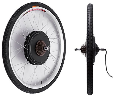 Rear-wheel mounted hub motors are more common on pre-built bikes because they offer better traction, more control, and are easily installed at the factory. For a conversion kit, they are a little harder to install than a front hub motor because of the chain, gearing and derailleur. Plus, you may be limited to a 6 or 7-speed freewheel. However, a rear hub motor drive will provide more torque and be less obvious than a front hub motor if this is a concern.
